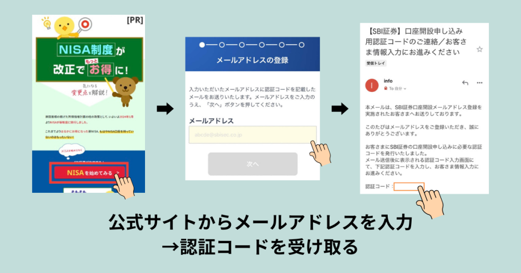 ここからはSBI証券で新NISAを始めたい方向けに、スクショ付きの口座開設ロードマップを贈ります。