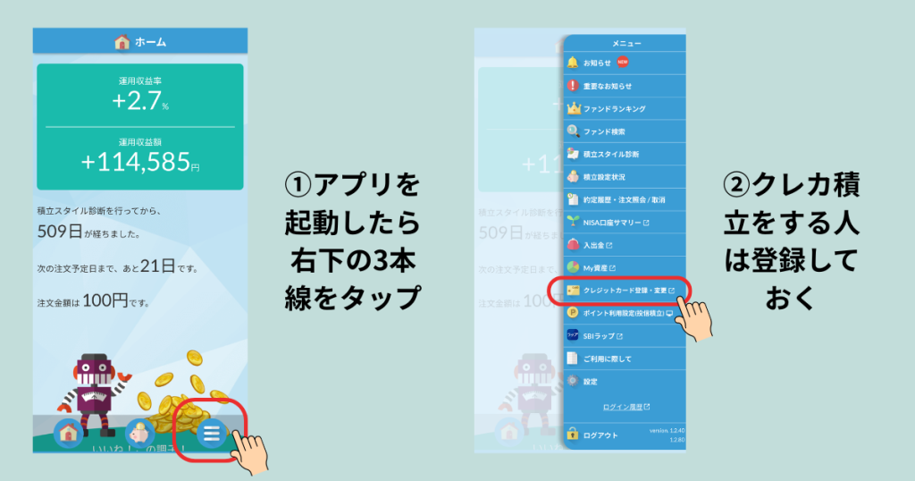 → 積立設定・ファンド選択(オルカンなど)をして完了!