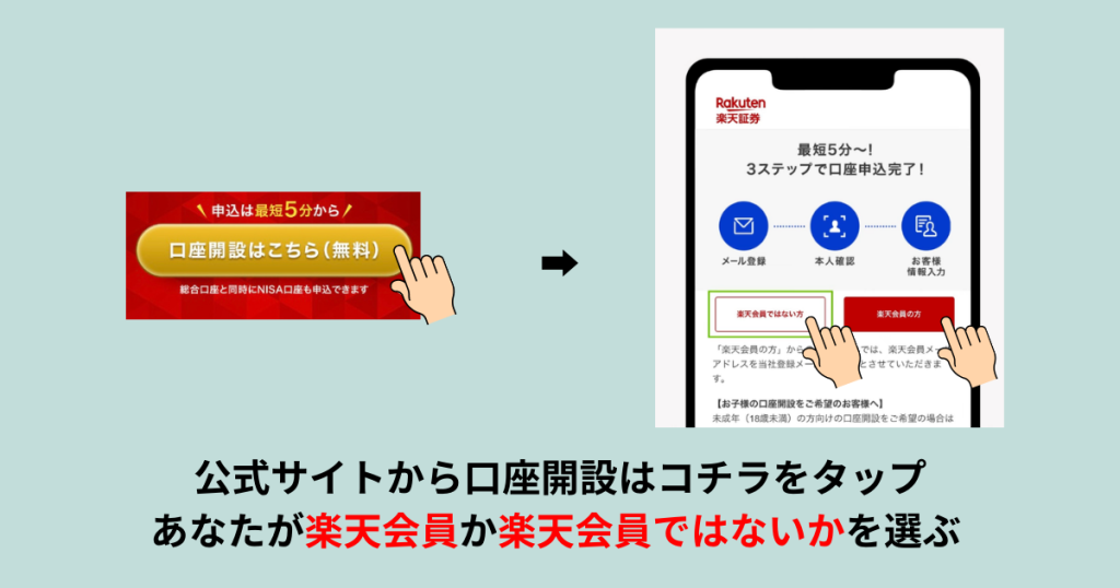 公式サイトから口座開設はコチラをタップ→あなたが楽転会員か楽天会員じゃないかを選びます。