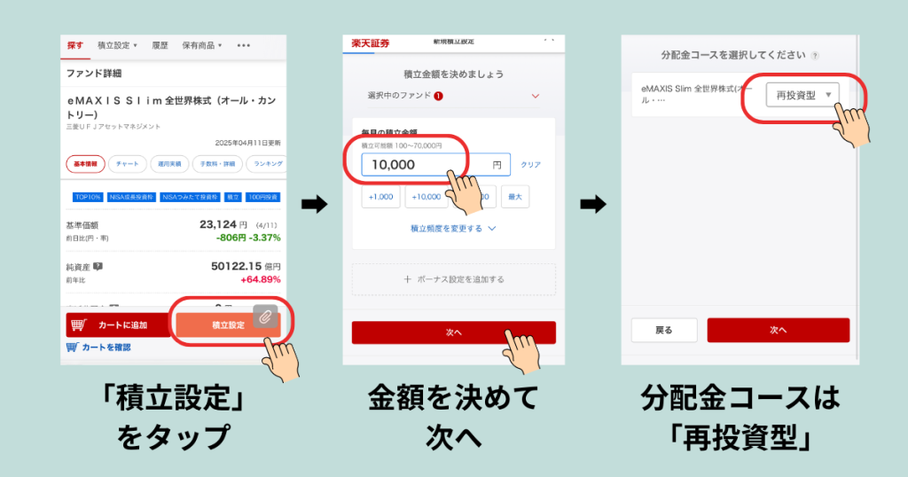 → 積立設定・ファンド選択(オルカンなど)をして完了!
