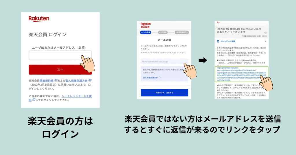 楽天会員の方はログイン、そうでない方はメールアドレスを送信し、返信できたリンクをタップ