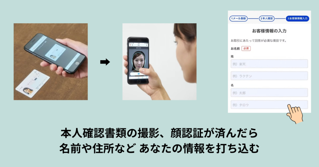 本人確認書類の撮影、顔認証が済んだら名前や住所などあなたの情報を打ち込む。