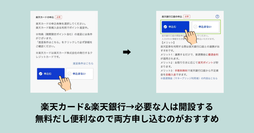 楽天カードと楽天銀行が必要な人は開設する。無料だし、両方申し込むのがおすすめ。