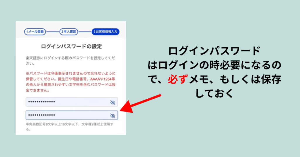 ユーザーネーム・ログインパスワードはログインの時必要になるので、必ずメモ、もしくは保存しておく